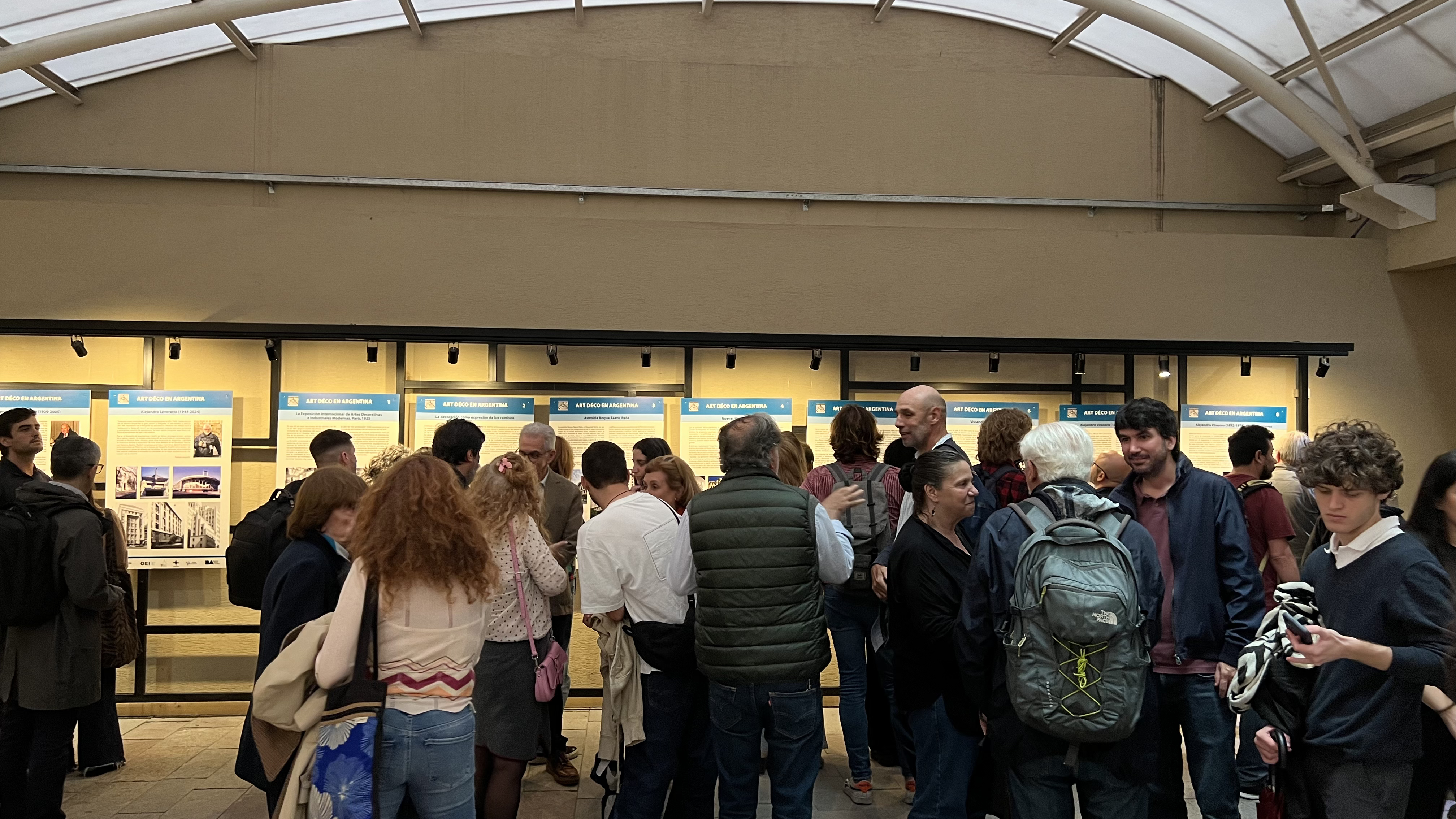 El guion curatorial, desarrollado por el Arq. Ramón Gutiérrez y la Dra. Patricia Méndez –presentes durante la inauguración–, se organiza en paneles temáticos que presentan obras representativas del Art Déco argentino, acompañadas por información de autoría, ubicación y contexto histórico. Los ejes abarcan desde la Exposición Internacional de Artes Decorativas e Industriales Modernas de París (1925) y los procesos de transformación urbana, hasta recorridos por la producción de figuras destacadas como Alejandro Virasoro y Francisco Salamone, y estudios regionales sobre Buenos Aires, Bahía Blanca, Santa Fe, Rosario, Concepción del Uruguay, Córdoba, Mendoza y Tucumán. La muestra también incluye homenajes al Arq. Federico Ortiz y al Lic. Alejandro Leveratto.