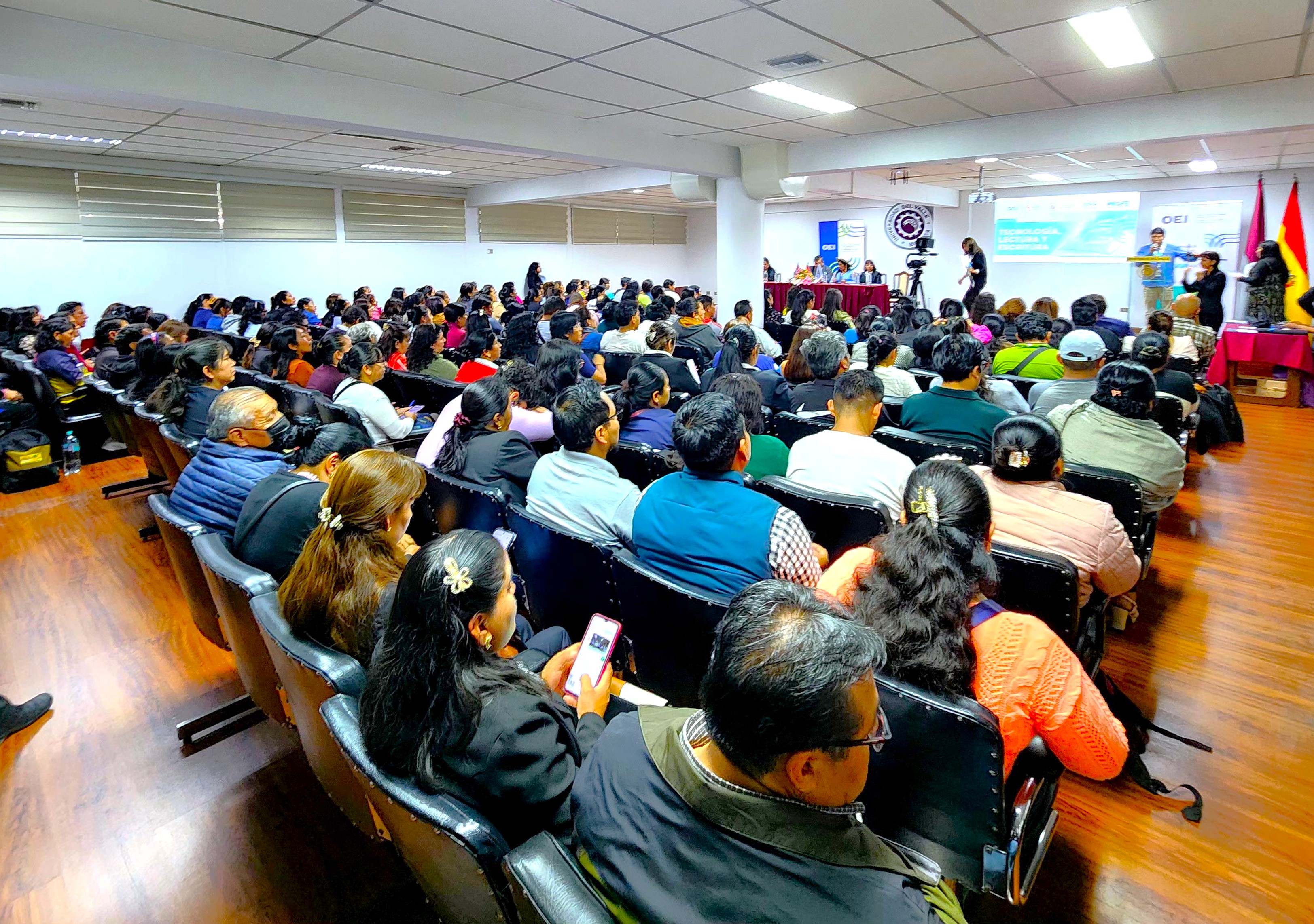 La ciudad de Cochabamba fue escenario del taller presencial del taller “El papel de las tecnologías en la lectura y escritura”, en el marco del proyecto “Promoción y Fortalecimiento de la Lectura en el Estado Plurinacional de Bolivia – Bolivia Lee”. La actividad se desarrolló en instalaciones de la Universidad del Valle (UNIVALLE) y reunió a más de 150 docentes y estudiantes.