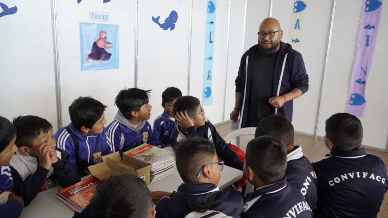 La iniciativa de la OEI reunió a escritores, cuentacuentos y estudiantes en la Feria Internacional del Libro de El Alto