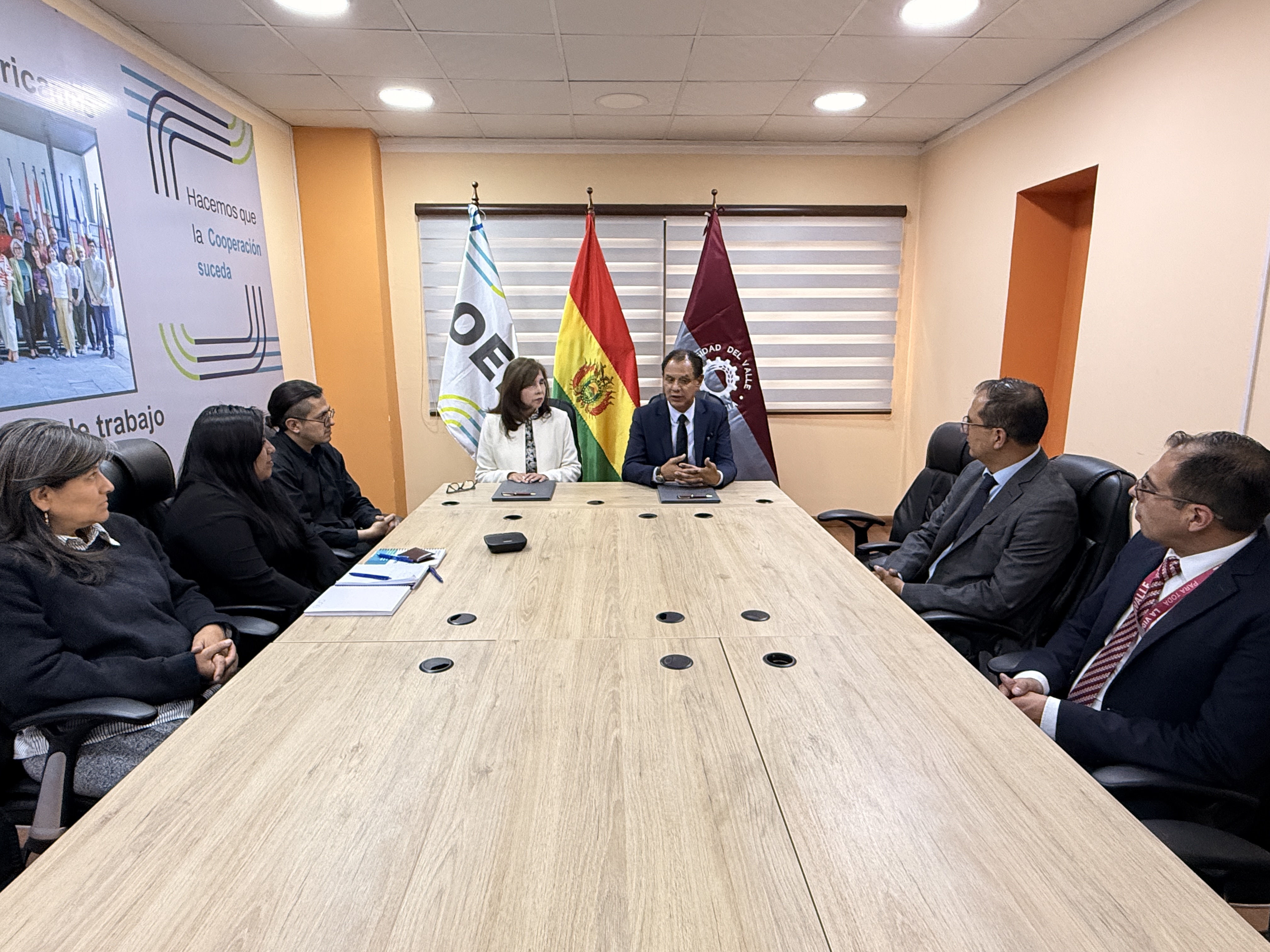 El acto se realizó en las oficinas de la OEI en Bolivia, donde se formalizó este acuerdo que permitirá desarrollar programas y proyectos de asistencia técnica, investigación, capacitación y otras iniciativas de interés común, orientadas a contribuir al desarrollo académico y científico.