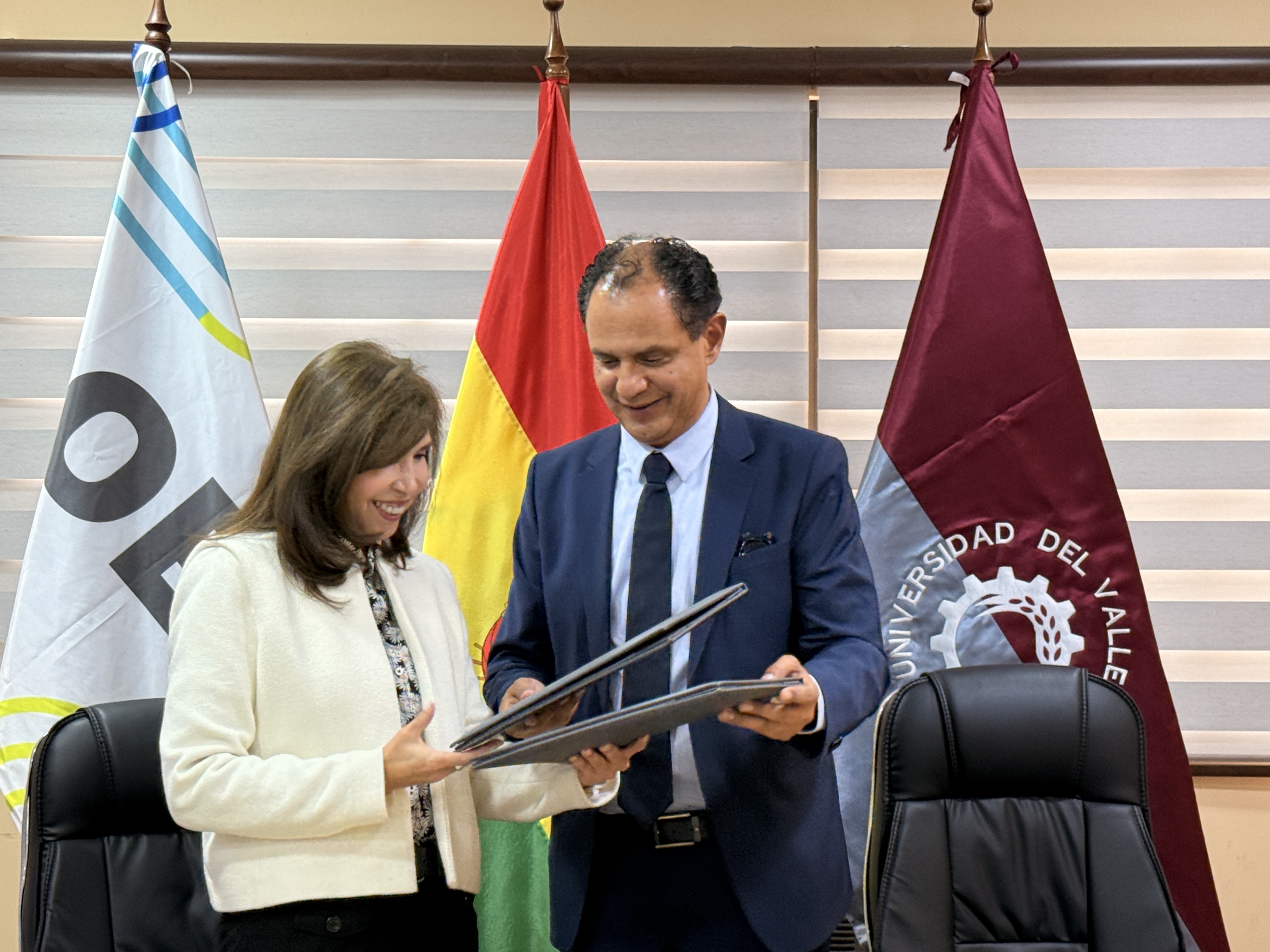 El convenio fue suscrito por la directora de la OEI en Bolivia, Yovanna Soria Galvarro Rosales, y el rector de la Universidad Privada del Valle, Gonzalo Vicente Ruiz Ostria, quienes destacaron la importancia de establecer alianzas estratégicas entre instituciones académicas y organismos internacionales para promover la innovación, la investigación y la formación de profesionales.