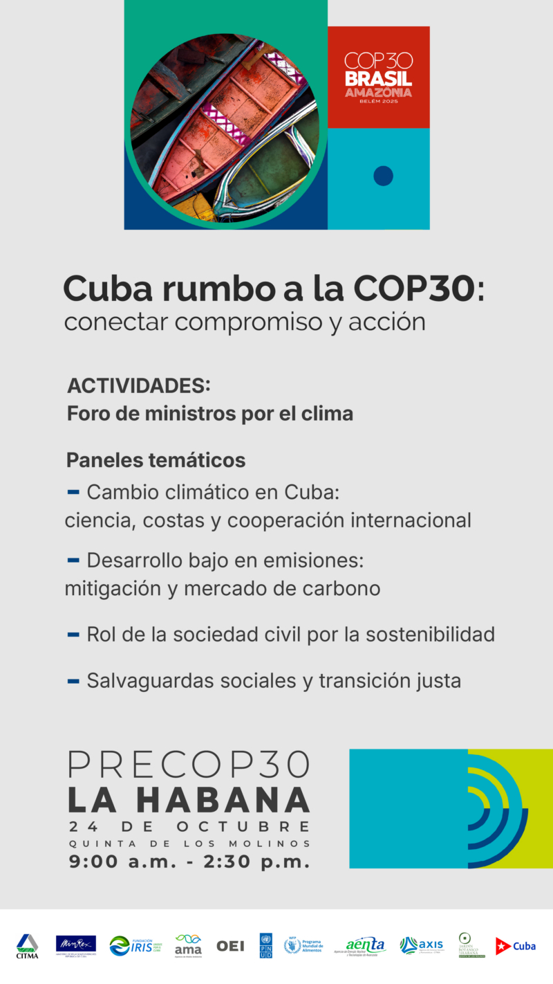 Programa General PreCOP30 Cuba. “Cuba Rumbo a la COP 30 de cambio climático: conectar compromiso y acción”