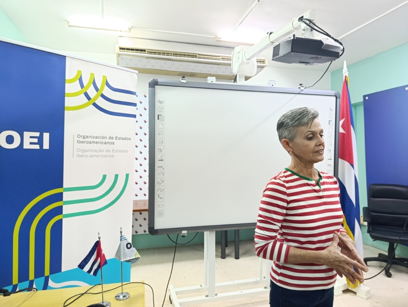 La Dra.C. Annia Pérez Cano por su parte presentó ejemplos y recursos prácticos para la aplicación de la IAG en el aula, ofreciendo a los docentes herramientas concretas para integrar estas tecnologías en su práctica pedagógica. Con ello, la iniciativa se enmarca en la estrategia regional de la OEI para promover la innovación educativa y la inclusión digital, y constituye un paso decisivo para que los docentes cubanos se preparen ante los retos de la transformación tecnológica y pedagógica.