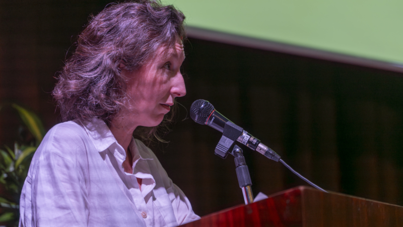 Para el cierre, la investigadora española Sandra Sotelo compartió su mirada sobre formación docente, mediación cultural e innovación pedagógica, desde su amplia experiencia internacional en artes vivas, ecología política, transformación de conflictos y justicia climática.