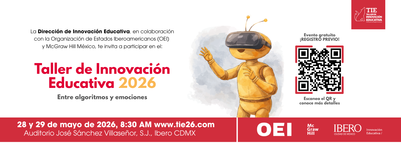 La Universidad Iberoamericana Ciudad de México y la Organización de Estados Iberoamericanos (OEI) en México, invitan a participar en el Taller de Innovación Educativa 2026 «Entre algoritmos y emociones: la escuela que sentimos y pensamos».