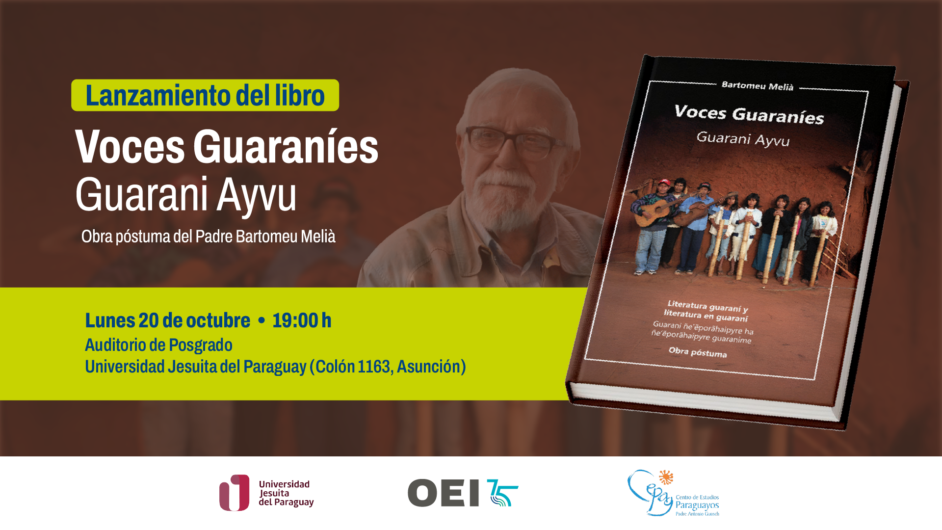 En homenaje al legado intelectual y humano del padre Bartomeu Melià, la Organización de Estados Iberoamericanos para la Educación, la Ciencia y la Cultura (OEI), junto con la Universidad Jesuita del Paraguay y el Centro de Estudios Paraguayos Antonio Guasch (CEPAG), presentarán el libro “Voces Guaraníes – Guarani Ayvu”, una obra póstuma que recupera los aportes más significativos del investigador y defensor de los pueblos guaraníes.
