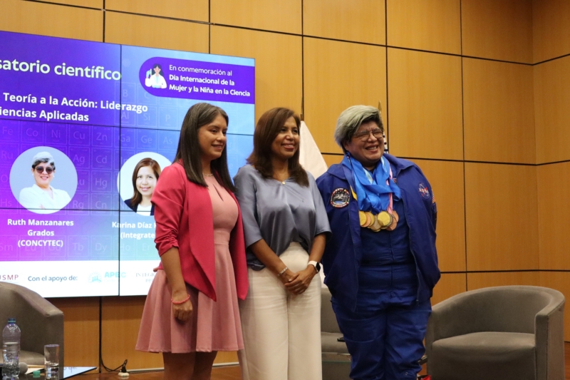 El segundo panel, titulado “De la Teoría a la Acción: Liderazgo Femenino en Ciencias Aplicadas”, fue moderado por Myra Flores Flores, especialista en Popularización de la Ciencia del CONCYTEC, y contó con la participación de Ruth Aracelis Manzanares Grados y Karina Janet Díaz Mendoza, destacadas profesionales vinculadas a la gestión científica y al sector tecnológico.