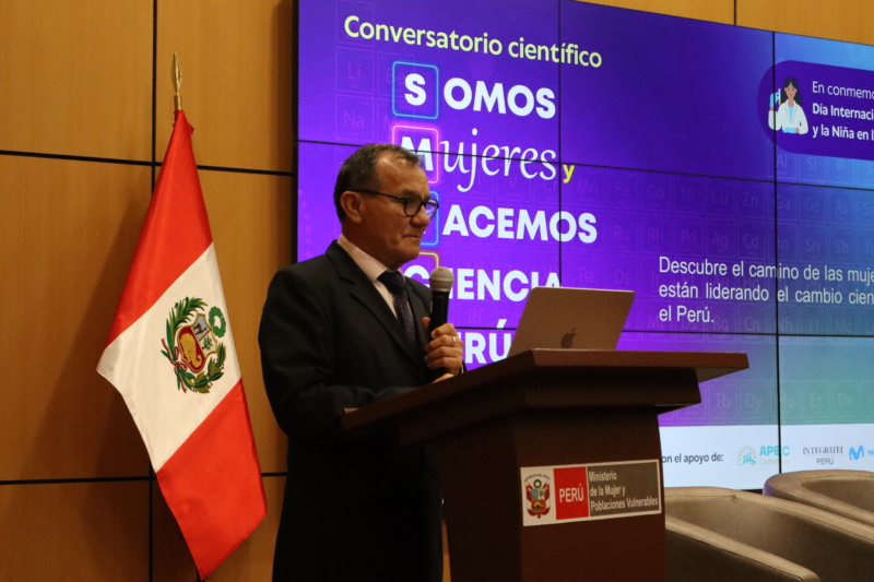 La ministra de la Mujer y Poblaciones Vulnerables, Sandra Liz Gutiérrez Cuba, subrayó la necesidad de que más niñas y adolescentes vean la ciencia como una posibilidad real. “Muchas de ellas hoy se enfrentan a un muro invisible, hecho de prejuicios que les dice que eso no es para ellas o que es demasiado difícil. Nuestro deber no es solo decirles que pueden, nuestro deber es derrumbar esos muros”, expresó. Asimismo, advirtió que, con un futuro en el que la mayoría de empleos estarán ligados a los campos STEM, “no estamos hablando solo de brechas salariales, estamos hablando del derecho al futuro. Si no actuamos hoy, estaremos dejando a nuestras niñas fuera del mundo del mañana”