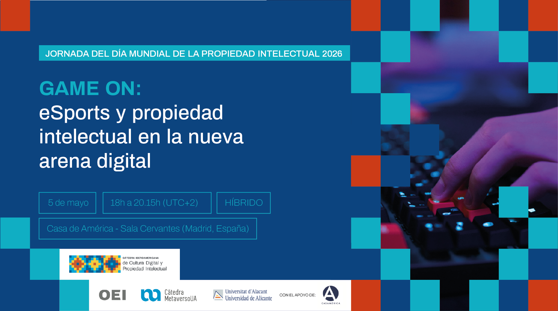 En conmemoración del Día Mundial de la PI 2026, cuyo lema es «La PI y el deporte: preparados, listos, ¡a innovar!», la Cátedra Iberoamericana de Cultura Digital de la Universidad de Alicante (UA) y la OEI ha organizado, en colaboración con la Cátedra para el Desarrollo Responsable del Metaverso de la citada universidad, una jornada sobre los eSports o deportes electrónicos.