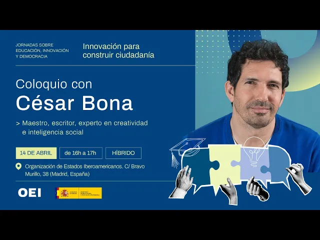 Posteriormente, en formato híbrido, ha tenido lugar el coloquio «Construcción de ciudadanía, una mirada desde la escuela», protagonizado por el maestro y escritor César Bona, reconocido internacionalmente por su labor educativa.