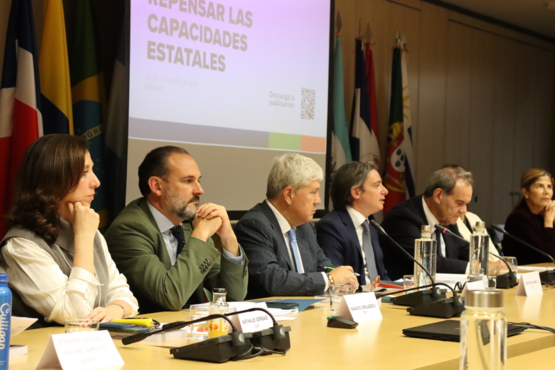 Este miércoles, 22 de octubre, la sede de la SEGIB en la capital española acogió el acto de presentación del libro Repensar las capacidades estatales: Serie Estado, Gestión Pública y Desarrollo, editado por CAF – banco de desarrollo de América Latina y el Caribe, una iniciativa académica que desde su primera edición en 2015 ha consolidado un acervo de siete volúmenes con aportes fundamentales sobre la gestión pública y el desarrollo en la región.