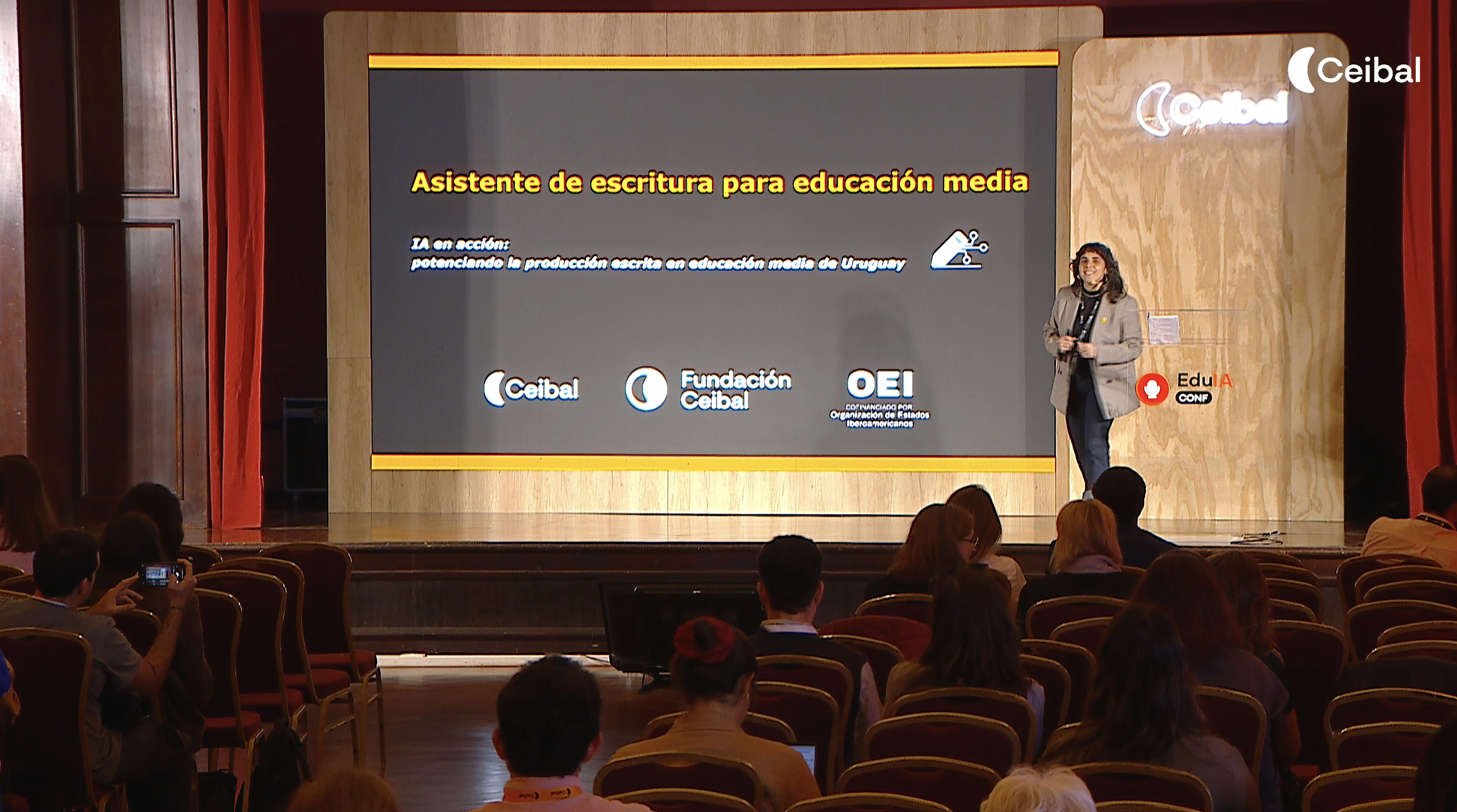 Como parte de las actividades que se dieron cita en el Congreso Regional sobre Inteligencia Artificial en la Educación, el pasado 15 de octubre se presentó ante el público asistente el proyecto “IA en accón”, la iniciativa que resultó ganadora por Uruguay de la convocatoria de fondos concursables que lanzó la Organización de Estados Iberoamericanos para la Educación, la Ciencia y la Cultura (OEI) en febrero de este año.