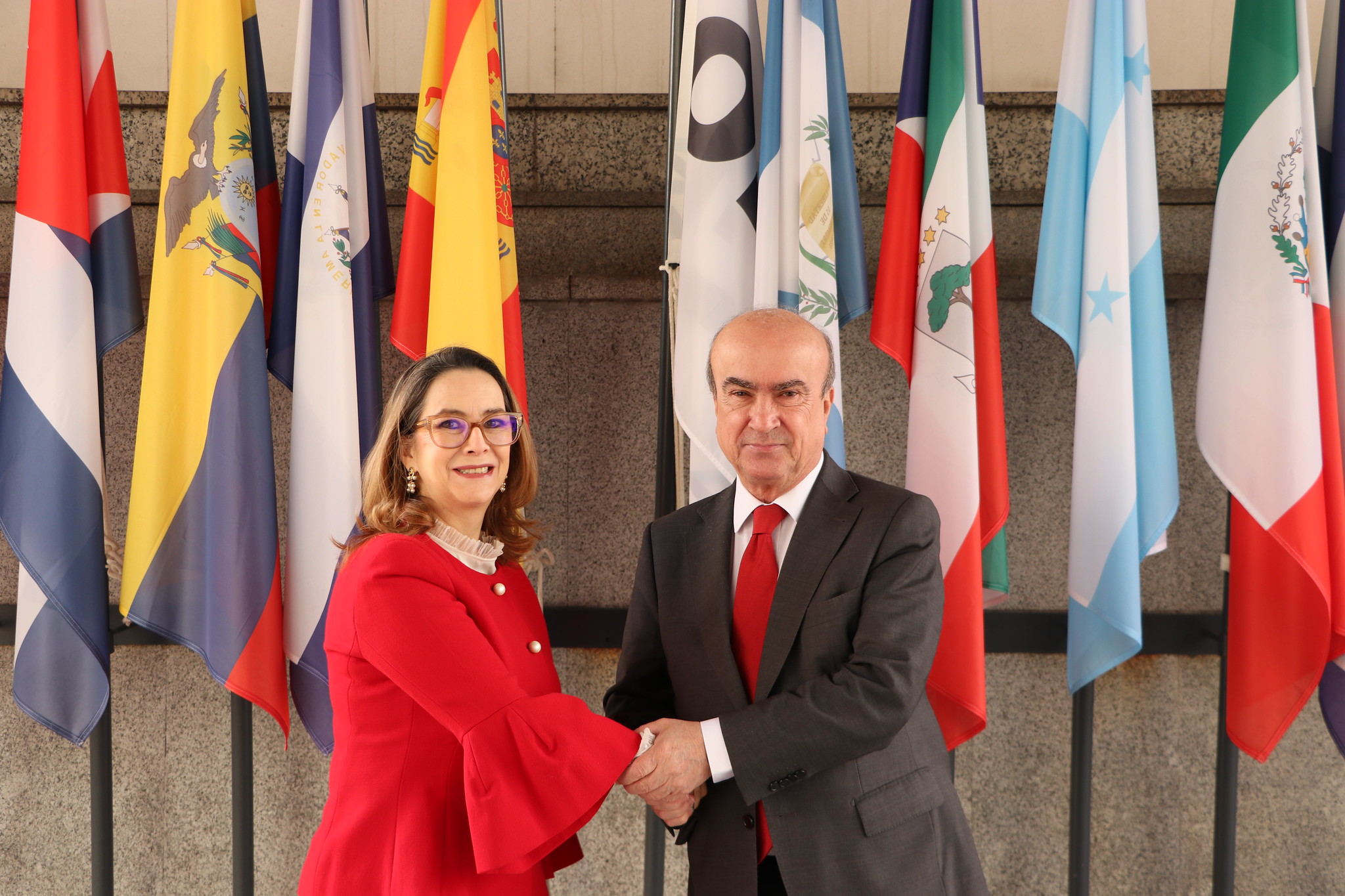 Gina Magnolia Riaño Barón y Mariano Jabonero, en la sede de la OEI en Madrid. |